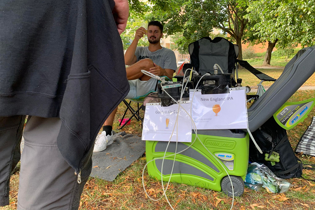 – Vi blev överraskade av regn vid niotiden, men hade annars en jättetrevlig kväll med både nya och gamla besökare. En uppskattad öl var Jonas Perssons “Spruce IPA” med granskott och Stephan Schaefers neipa ”Obsession”, berättar Filip Ängeby som var på plats.