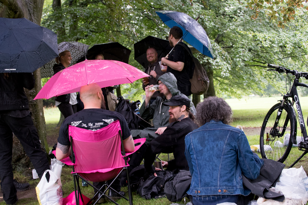 Stämningen var ändå ganska hög och folk skyddade sig efter bästa förmåga mot regnet. Martin Niklasson och några andra hembryggare hade även tagit med ölfat som delades med de övriga, vilket hjälpte till att hålla humöret uppe.