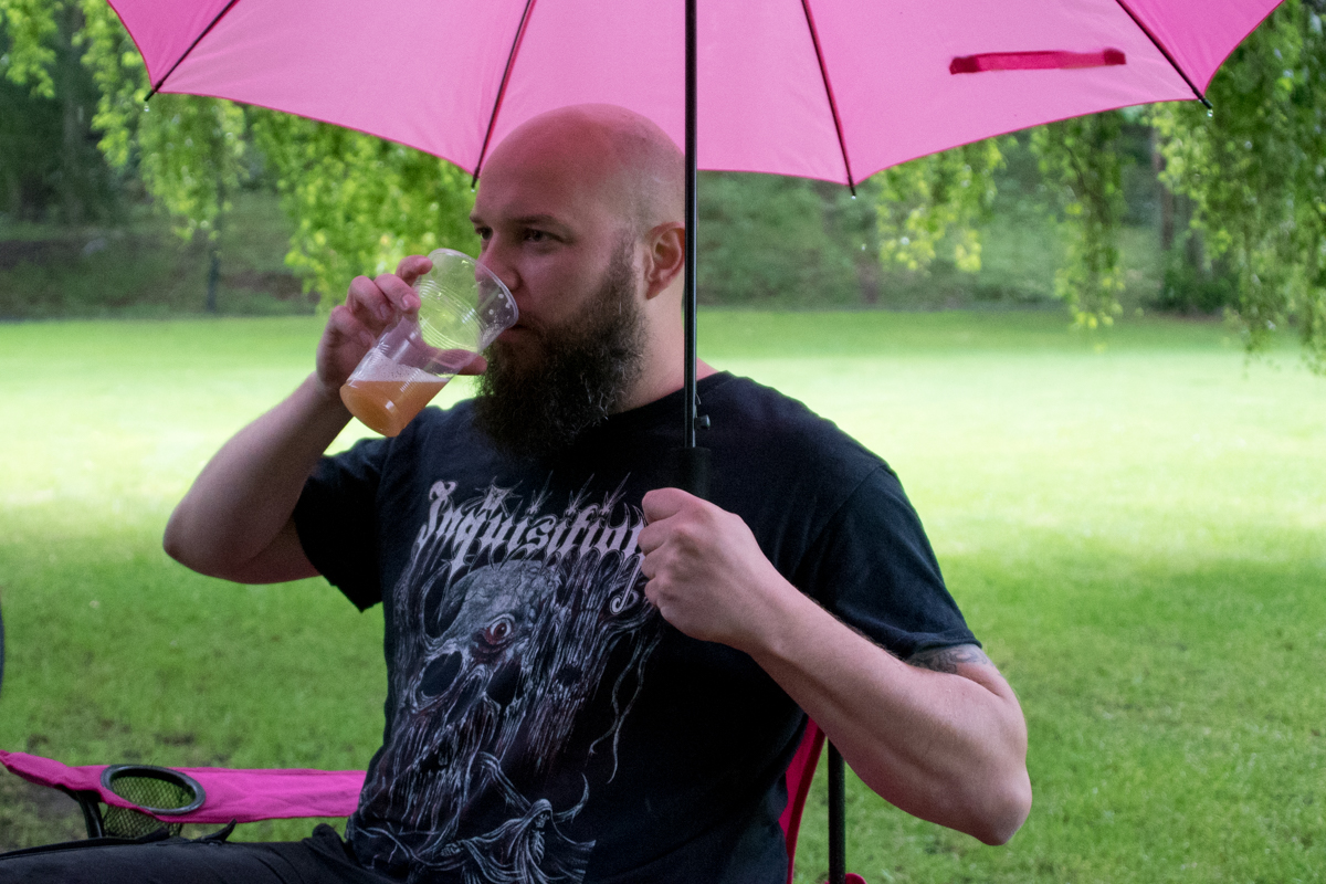 Stämningen var ändå ganska hög och folk skyddade sig efter bästa förmåga mot regnet. Martin Niklasson och några andra hembryggare hade även tagit med ölfat som delades med de övriga, vilket hjälpte till att hålla humöret uppe.