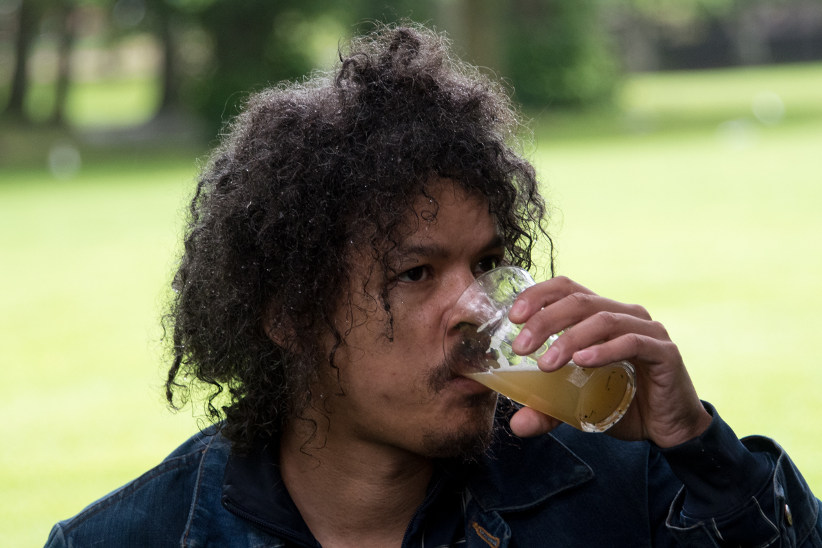 Stämningen var ändå ganska hög och folk skyddade sig efter bästa förmåga mot regnet. Martin Niklasson och några andra hembryggare hade även tagit med ölfat som delades med de övriga, vilket hjälpte till att hålla humöret uppe.