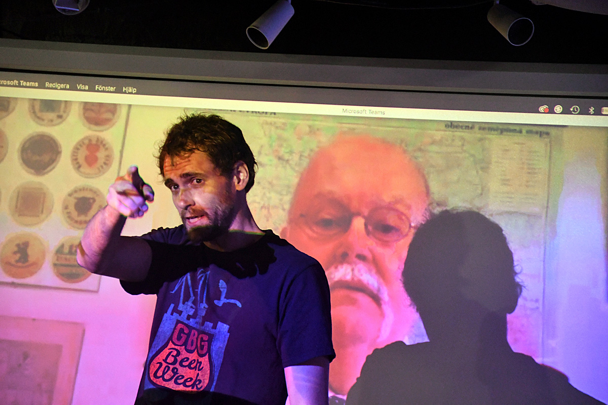 Via en videolänk kunde han bjuda på kunskap och humor kombinerat med nio öl från Franken och det blev förstås uppskattat.
