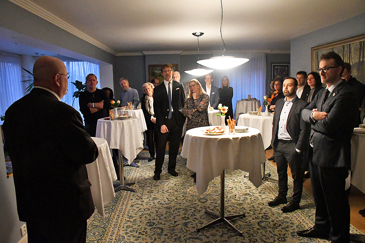 Runt 25 personer dök upp i den tjeckiska ambassadörens residens och nyfikenheten var stor när Svensson berättade om hur det ljusa lagerölet växte fram i Tjeckien under 1800-talet.