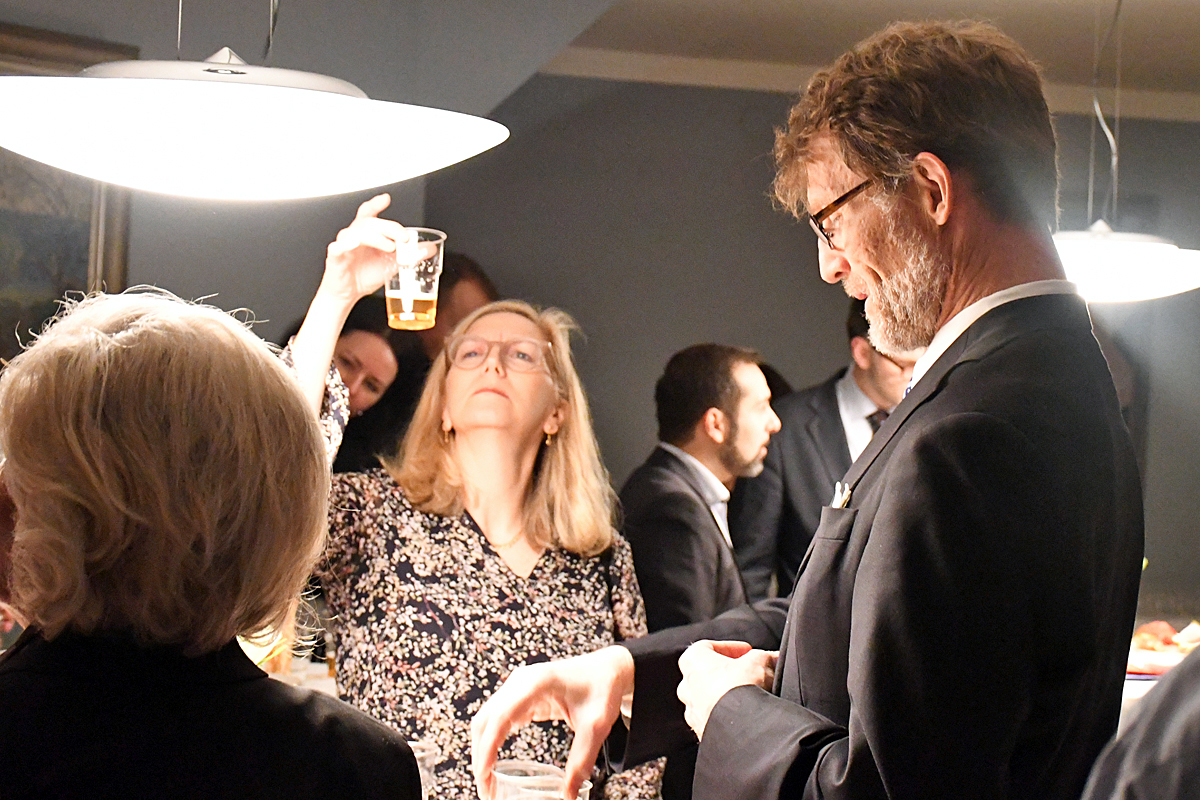 Runt 25 personer dök upp i den tjeckiska ambassadörens residens och nyfikenheten var stor när Svensson berättade om hur det ljusa lagerölet växte fram i Tjeckien under 1800-talet.