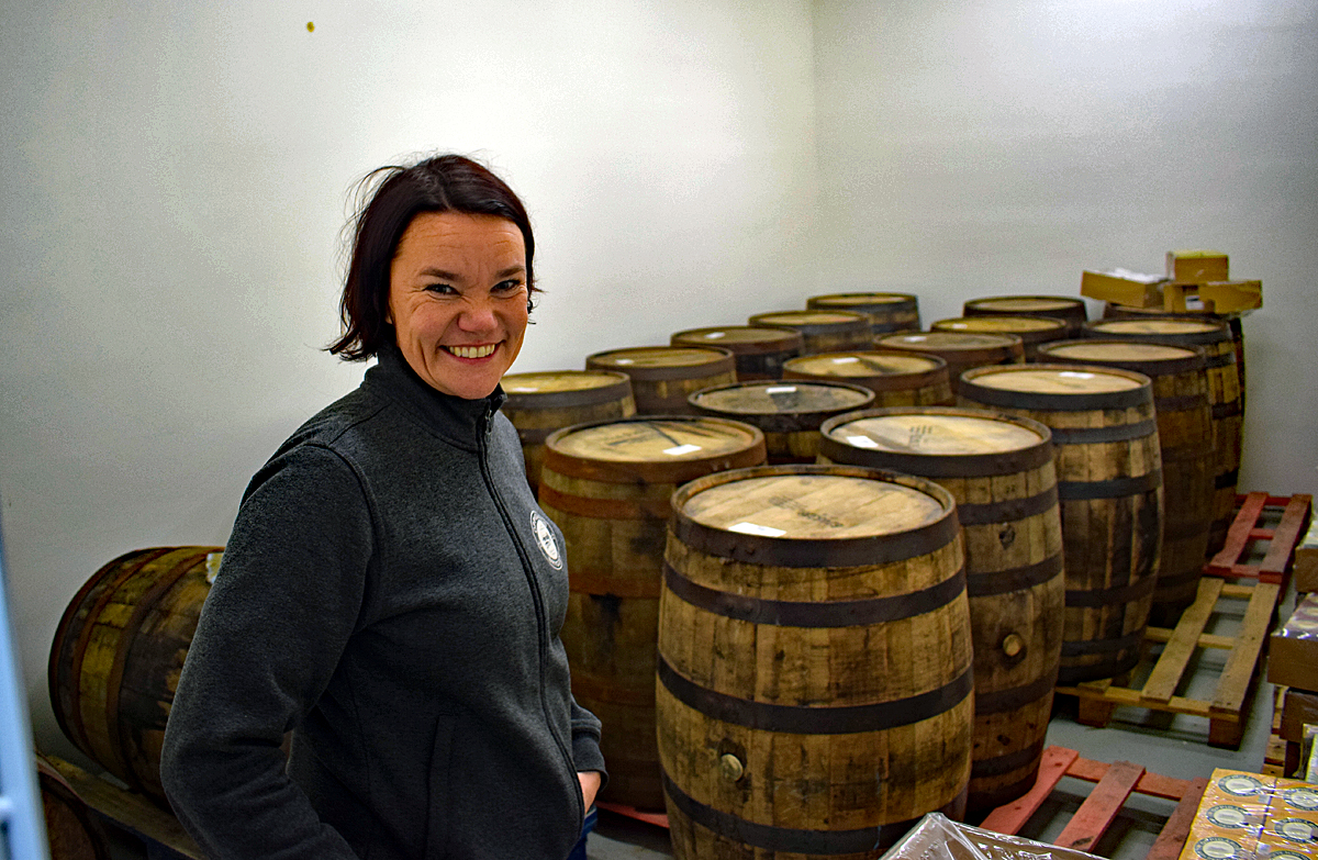Större utrymmen kan också komma att innebära fler fatlagrade öl från Oppigårds. Erika Olsson visade rummet som ligger i direkt anslutning till bryggverket.
