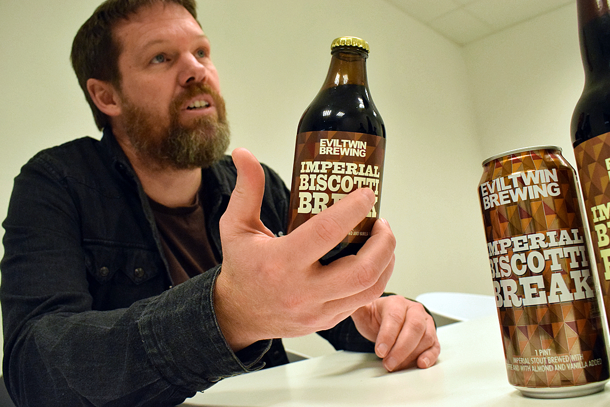 Mats Wahlström, vd på Poppels, är nöjd med de första bryggningarna av Evil Twin Imperial Biscotti Break.