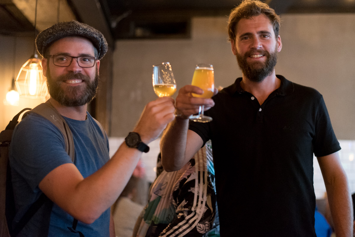 Författare, hembryggare och ölälskare: Peter Eronson och Simon Svensson gästade tvåårsjubileumet.
