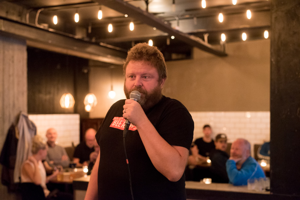 Ronny Karlsson från Beernews presenterar Paulo Mendonca och Peter Iwers.