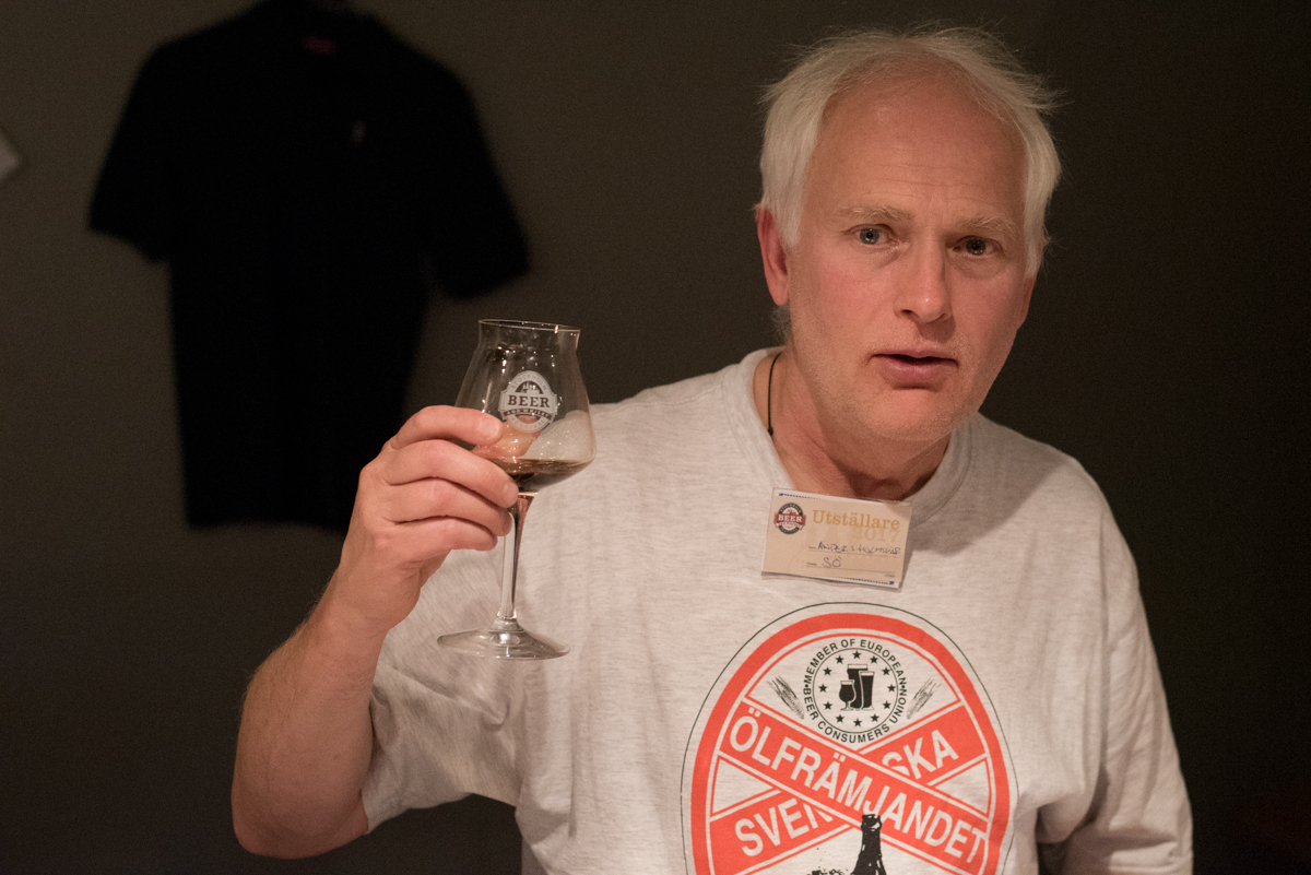 Anders Holmström representerar Svenska ölfrämjandet på mässan.