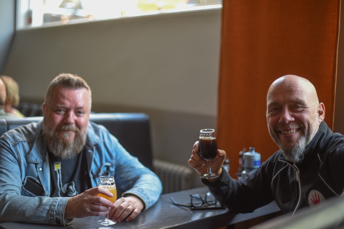 Pär Lönegård och Jugge Hasselqvist från Oliver Twist tittade in på Waza Restaurang & Bryggeri för att testa lite öl.