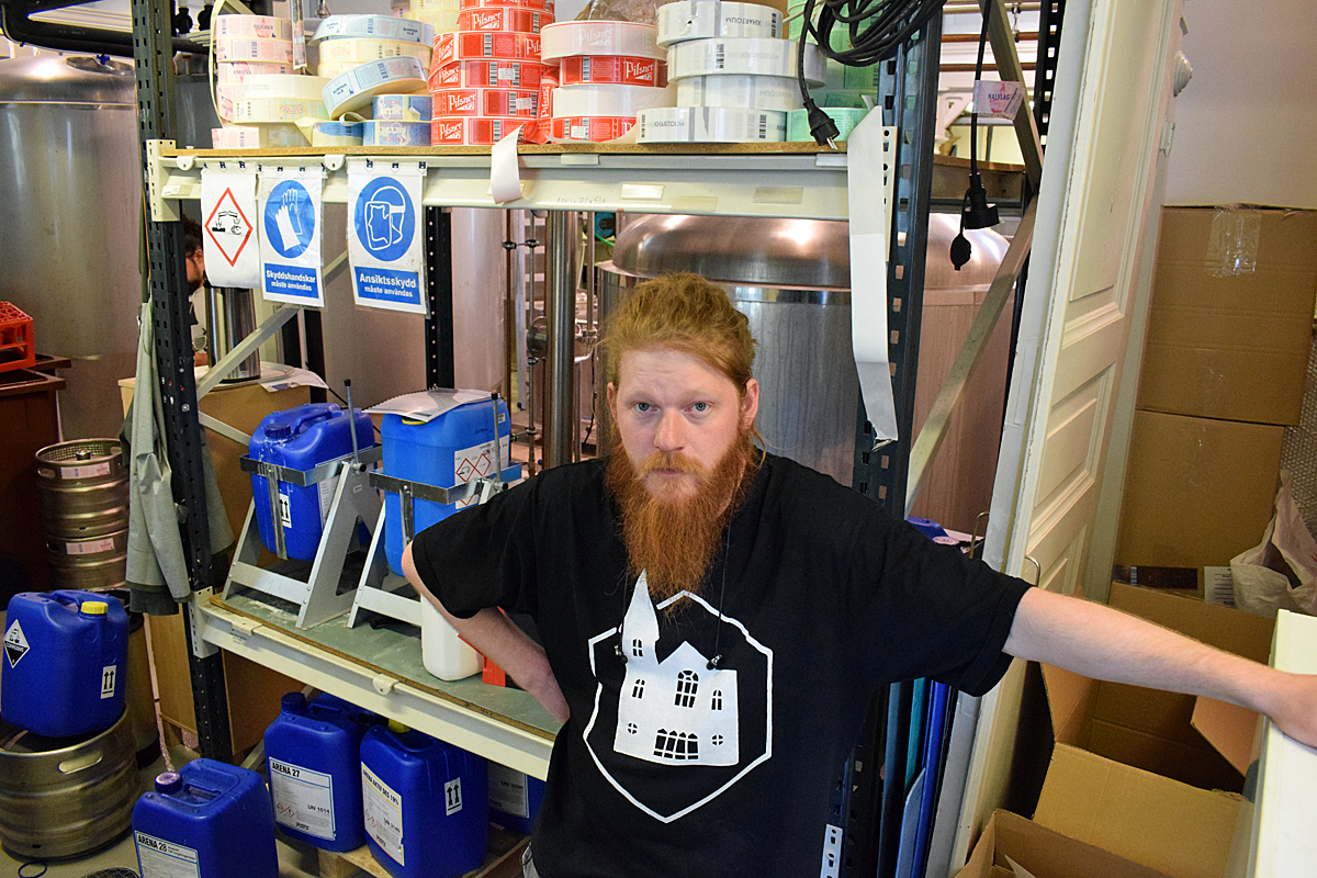 Tomas Lindberg trivs i den något udda bryggerilokalen.