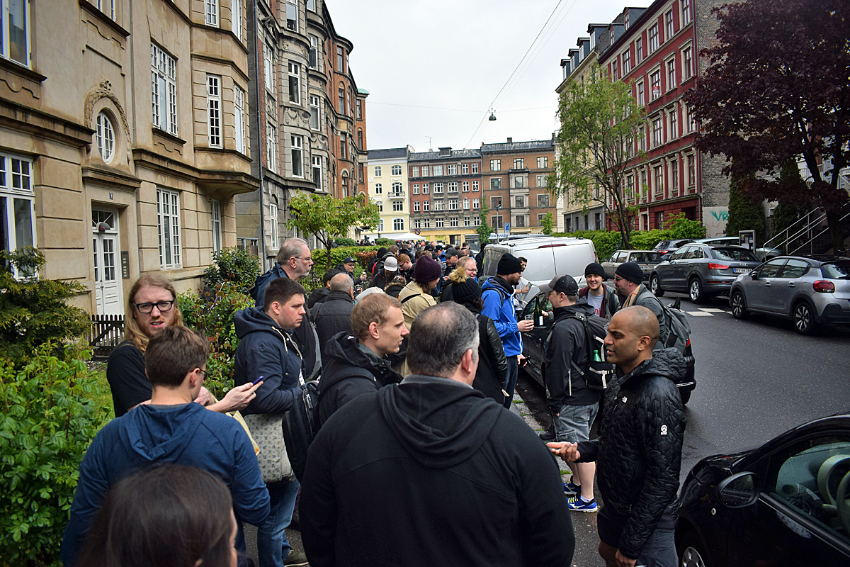 Förste svensk i kön var Robert Brodén som hade plats fyra. Han var på gott humör trots den kalla och ganska blöta natten. Överhuvudtaget var det gott om svenskar i kön.