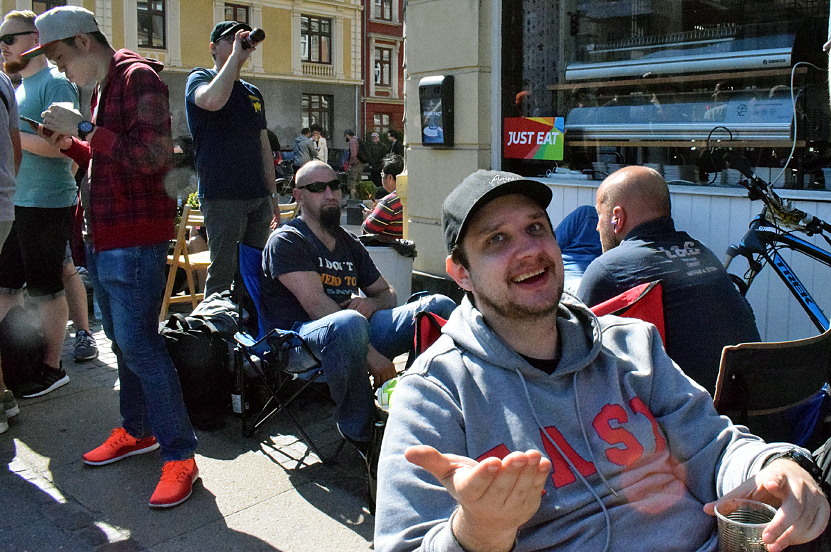 Att köa innebär dock inte bara att vänta. De allra flesta har med sig egna öl och det tillhör rutinen att bjuda de som väntar närmast i kön. Dessutom sålde Himmeriget en del öl från en mobil liten bar, så öl fanns det gott om.