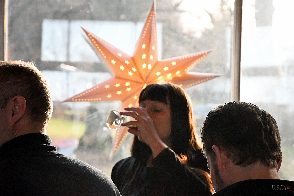 Annika Lindow hann prova en öl innan det var dags att öppna dörrarna för gästerna.