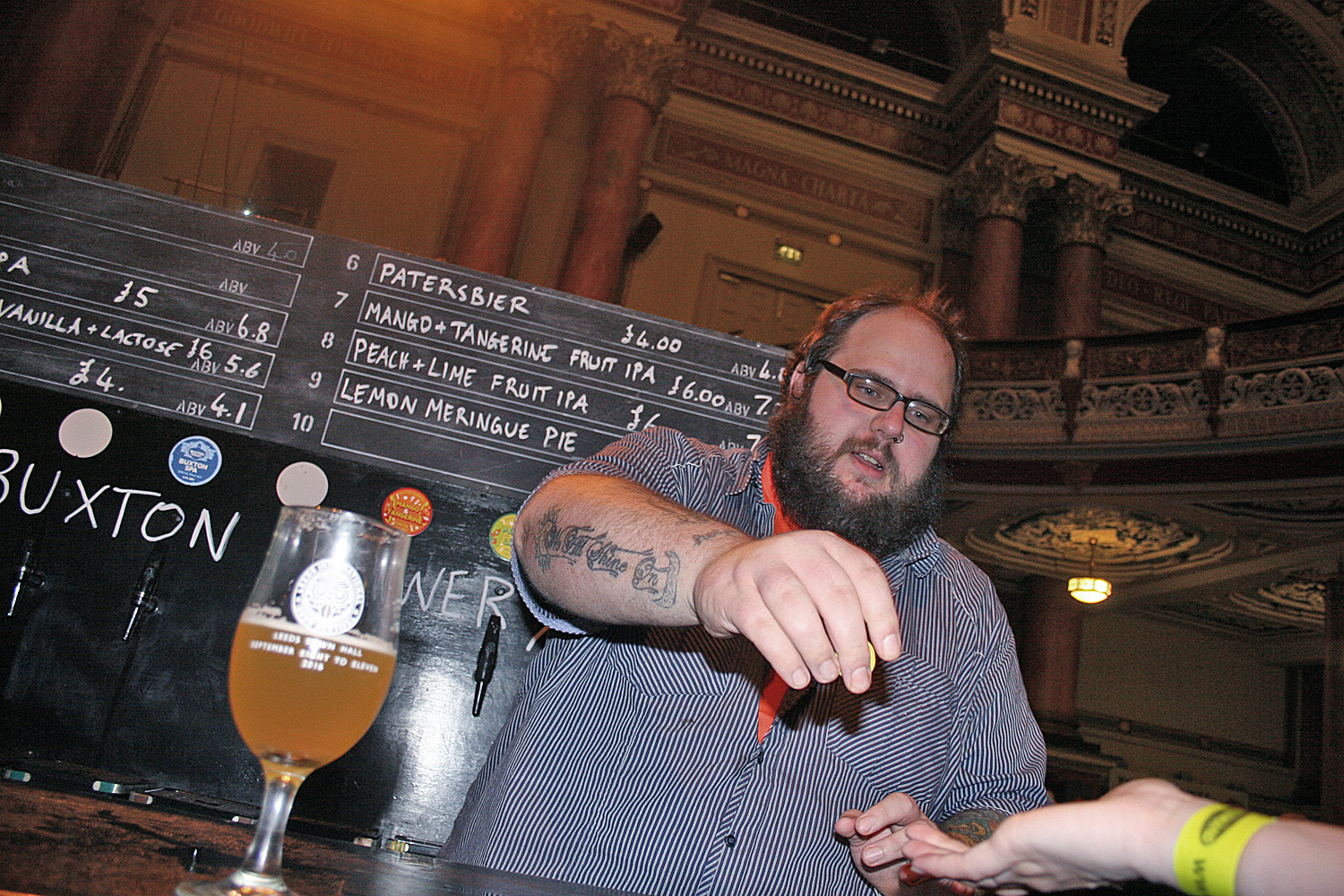 Buxton var ett av många bryggerier som serverade öl på festivalen. Chris Brook stod bakom bardisken den här kvällen.