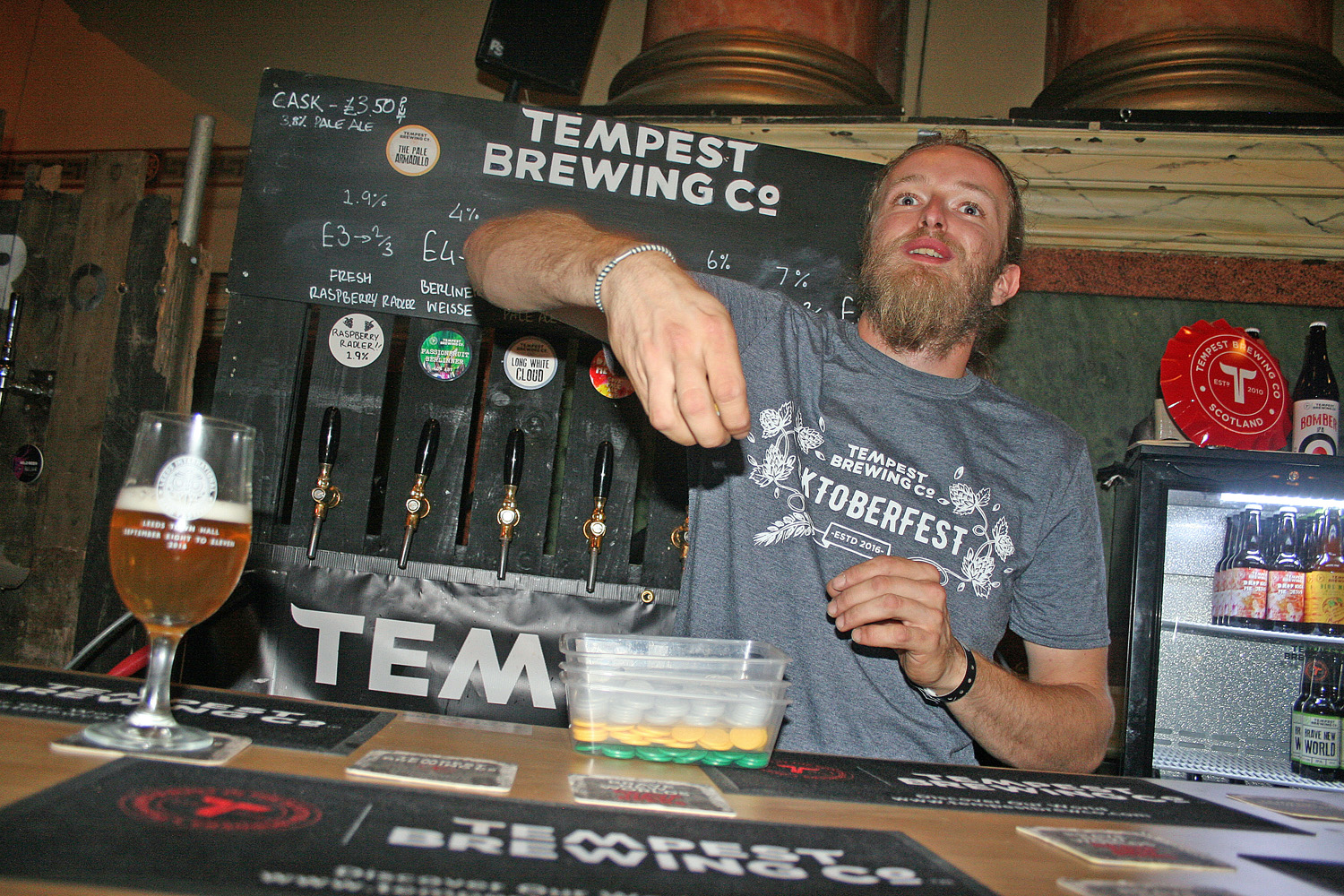 Den stora lokalen var inne i Leeds Town Hall. En stor och pampig lokal med mycket utsmyckningar och rejält högt i tak. Sämst lokal hade man kanske valt för de internationella gästerna. I en varm och ganska trång lokal en trappa ner samsades bryggerier som Jopen, Mikkeller, Warpigs och Lervig.