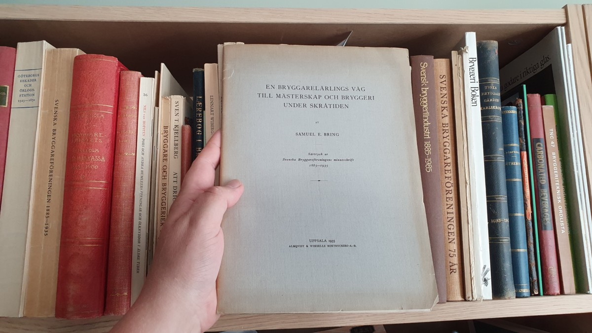 Två fulla bokhyllor med gamla ölböcker och mer ändå nedpackat i källaren. Linus Pilebrand, till vardags bryggare på Göteborgs Nya, har en liten hobby …