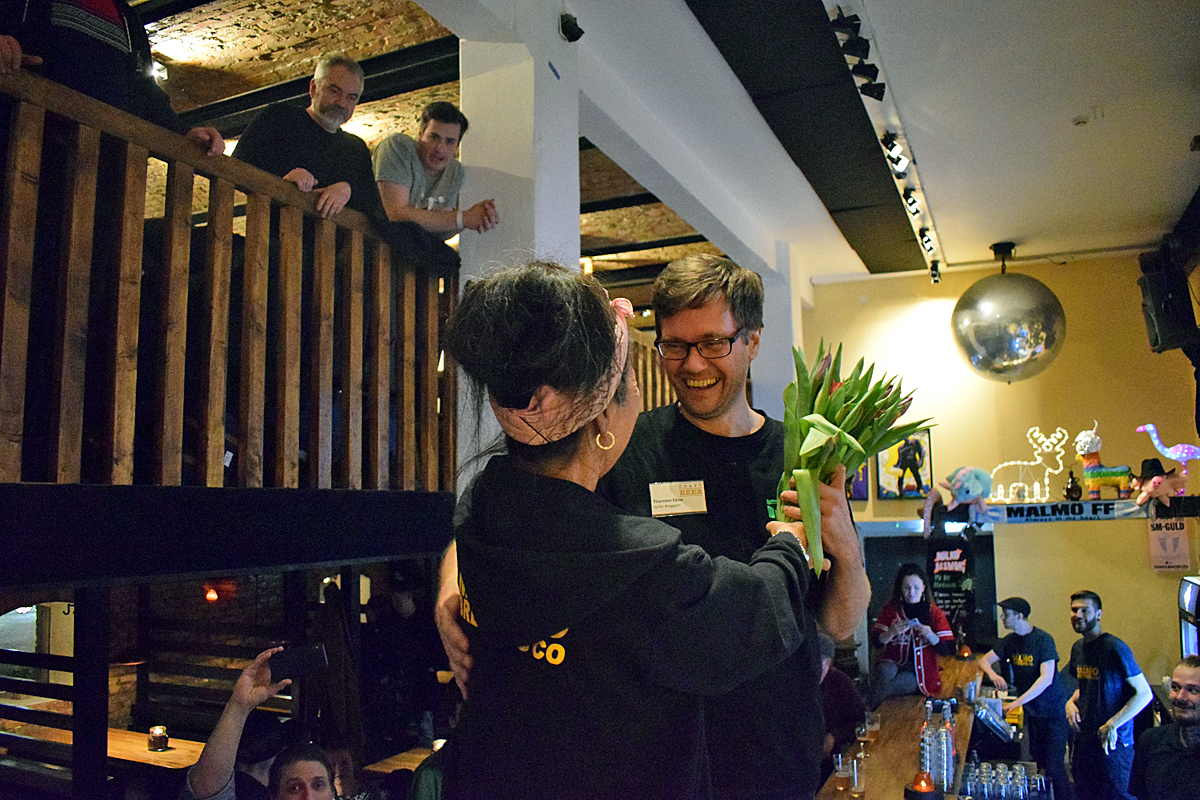 Priset för bästa IPA togs emot av Thorsten Ekne och prisutdelare var Li Johansson från Malmö Brewing.
