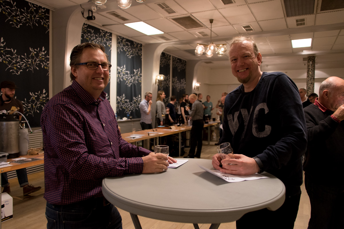 "Jag har börjat med hembryggning själv – jag har gjort en batch nu", säger Martin Caspersson, till höger, som kom till träffen med Stefan Winterlén. Båda var nöjda med kvaliteten på hembrygd öl.