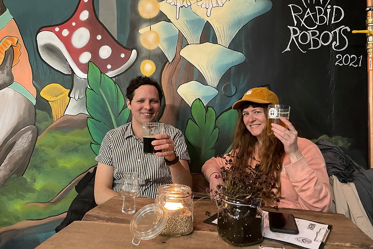 Jakob Thomsgård njöt av Hyllies öl tillsammans med Helia Chardet.