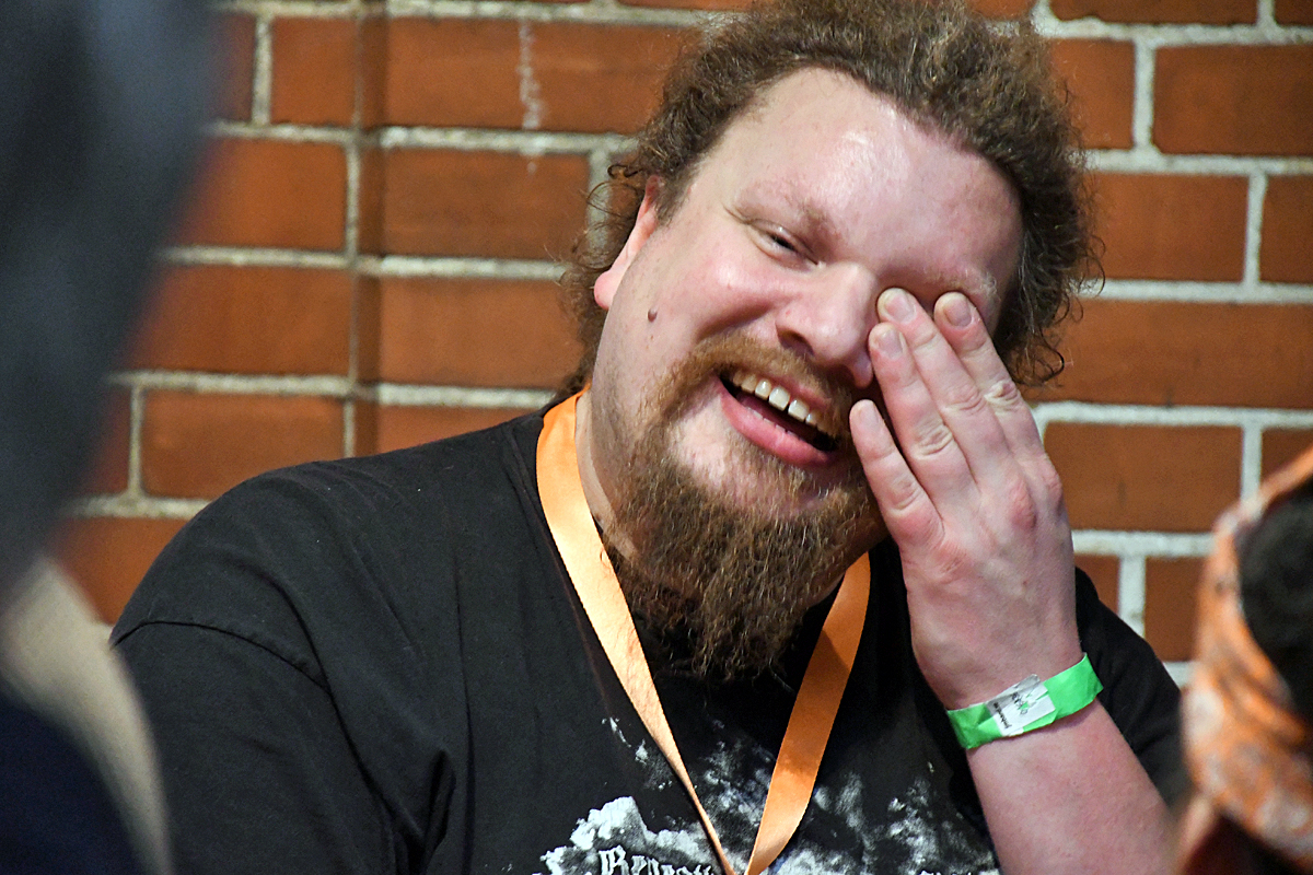 Linus Pilebrand från Göteborgs Nya Bryggeri fick sig ett gott skratt under lördagskvällen.