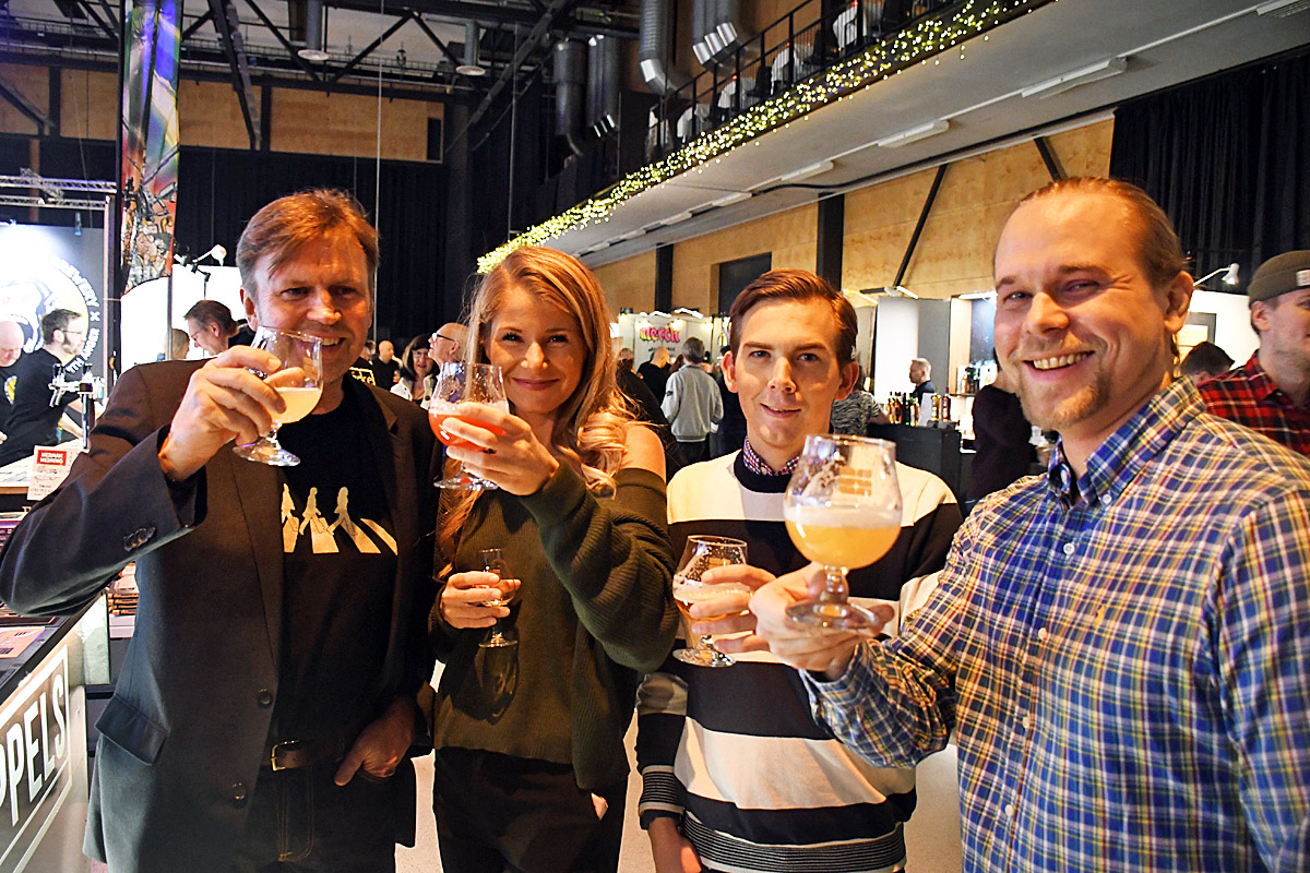 Niklas Jehander, Karolina Jonsson, Villegas Pettersson och Oskar Jehander provade öl hos Poppels.