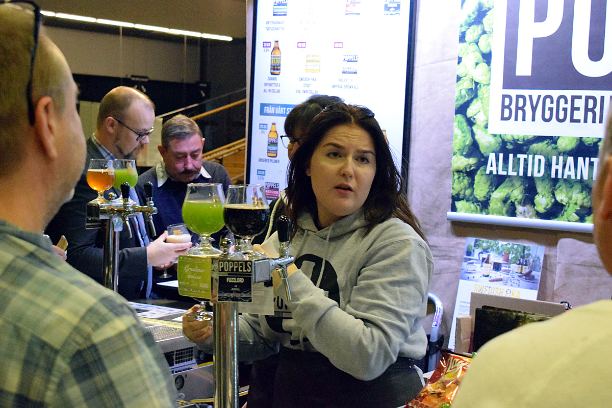 Sofia Gunnarsson serverade öl för Poppels och fick ganska mycket att göra under fredagen.