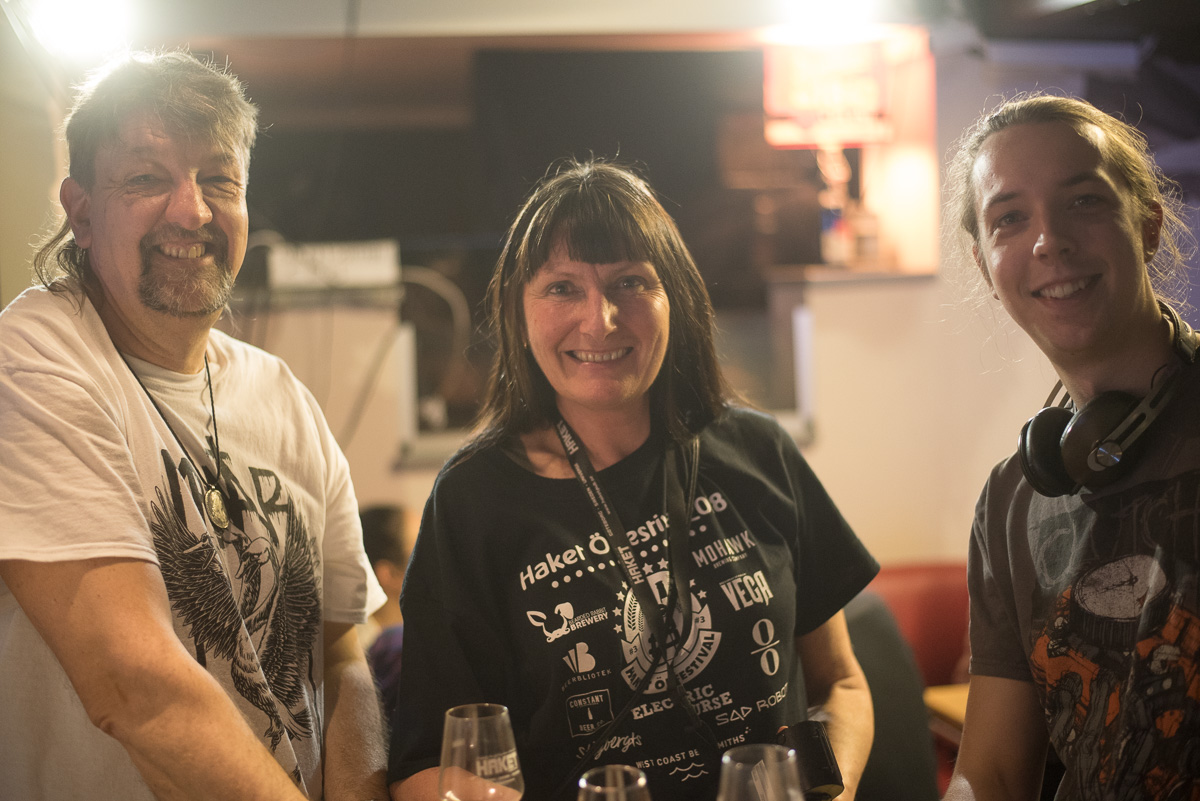 Sven-Erik Grönlund och sonen Rasmus pratar öl med Ölfrämjandets Annika Lindow. Rasmus är hembryggare och vann i höstas en tävling som innebar att han fick brygga sin öl hos Barlind Beer: Ö-Öl, Tredje Gången Gillt – en dillkryddad saison.