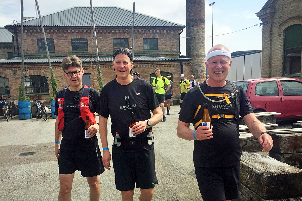 Normalt springer medlemmarna i klubben mellan 20 och 25 kilometer på lördagarna, så det här var en riktig utmaning. Kanske hjälpte det med lite öl i pauserna.