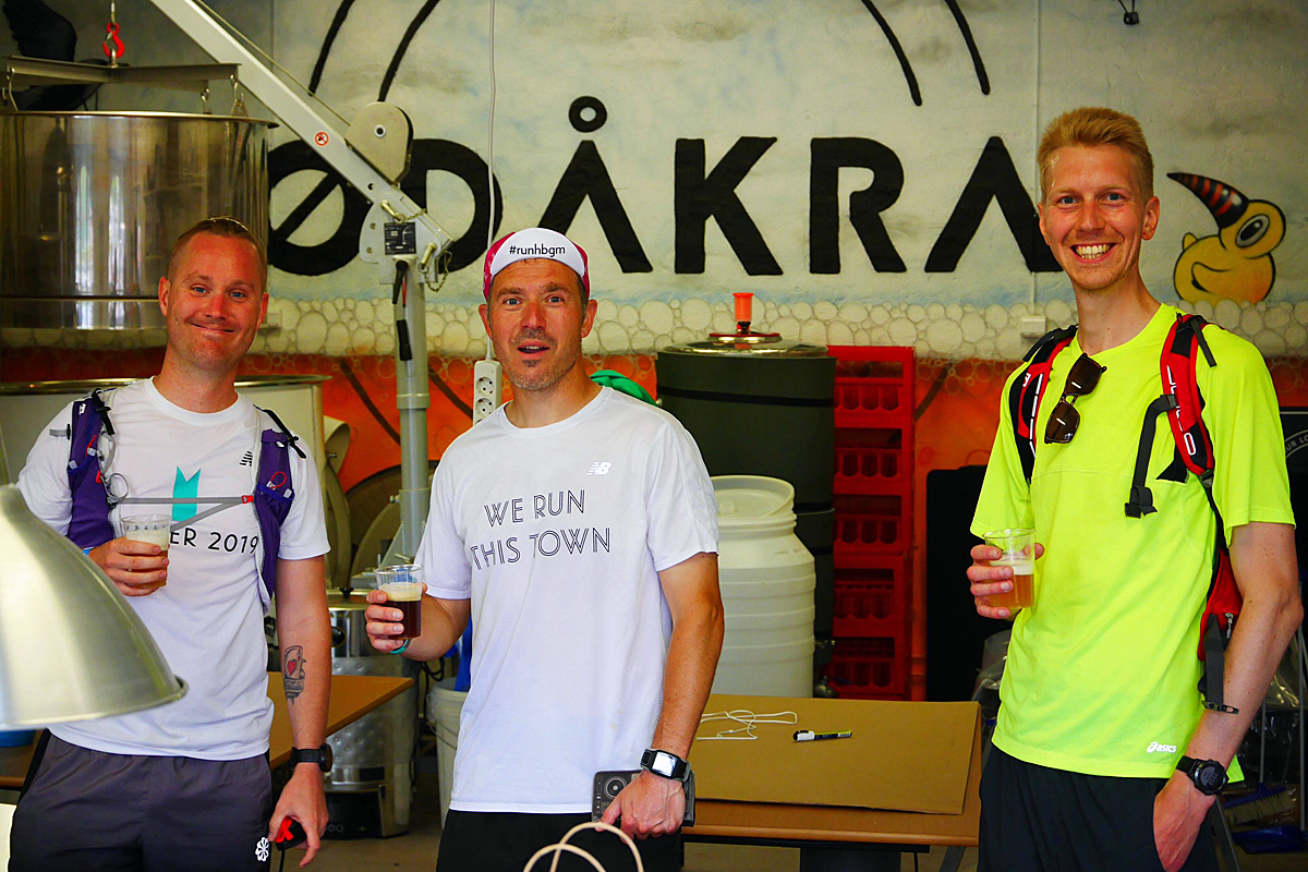 Normalt springer medlemmarna i klubben mellan 20 och 25 kilometer på lördagarna, så det här var en riktig utmaning. Kanske hjälpte det med lite öl i pauserna.