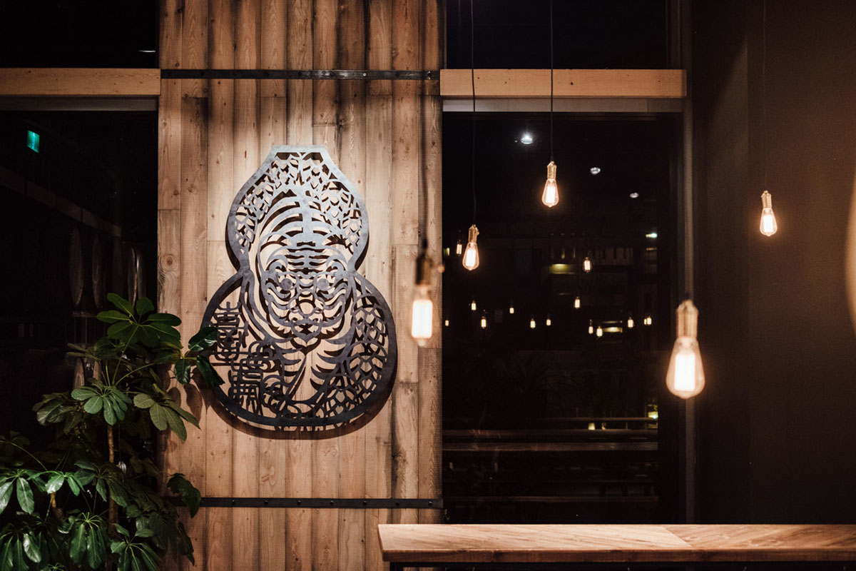 Bryggeriets logga som är en tiger i en kalabass omgiven av humlekottar. (Foto Taihu Brewing)