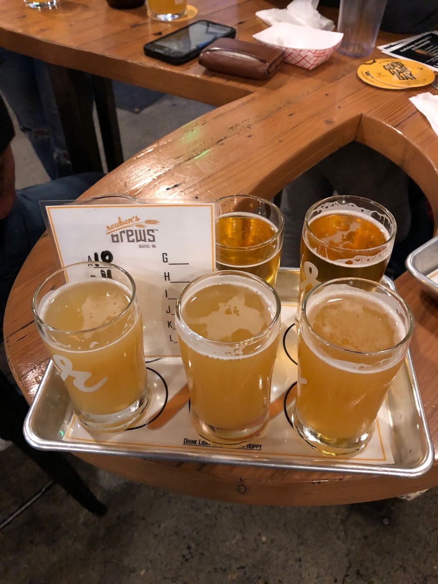 Nästan alla som vi mött under resan har pratat om Reuben’s Brews, varför de blev ett måste. Kranlistan hade en kraftig övervikt mot det humliga – av tjugotre kranar var det elva olika varianter av IPA. Mycket grumligt, och flera riktigt bra. Trippel-IPA:n Triple Crush gillade vi båda två, med riktigt stor humle och balanserad beska. Peter, som gillar klassisk västkuststil, fastnade också för Triumvirate. Med de sista tre ölen på listan stängde vi stället och insåg att Seattle inte hade mer hantverksöl att erbjuda sent en torsdagkväll.