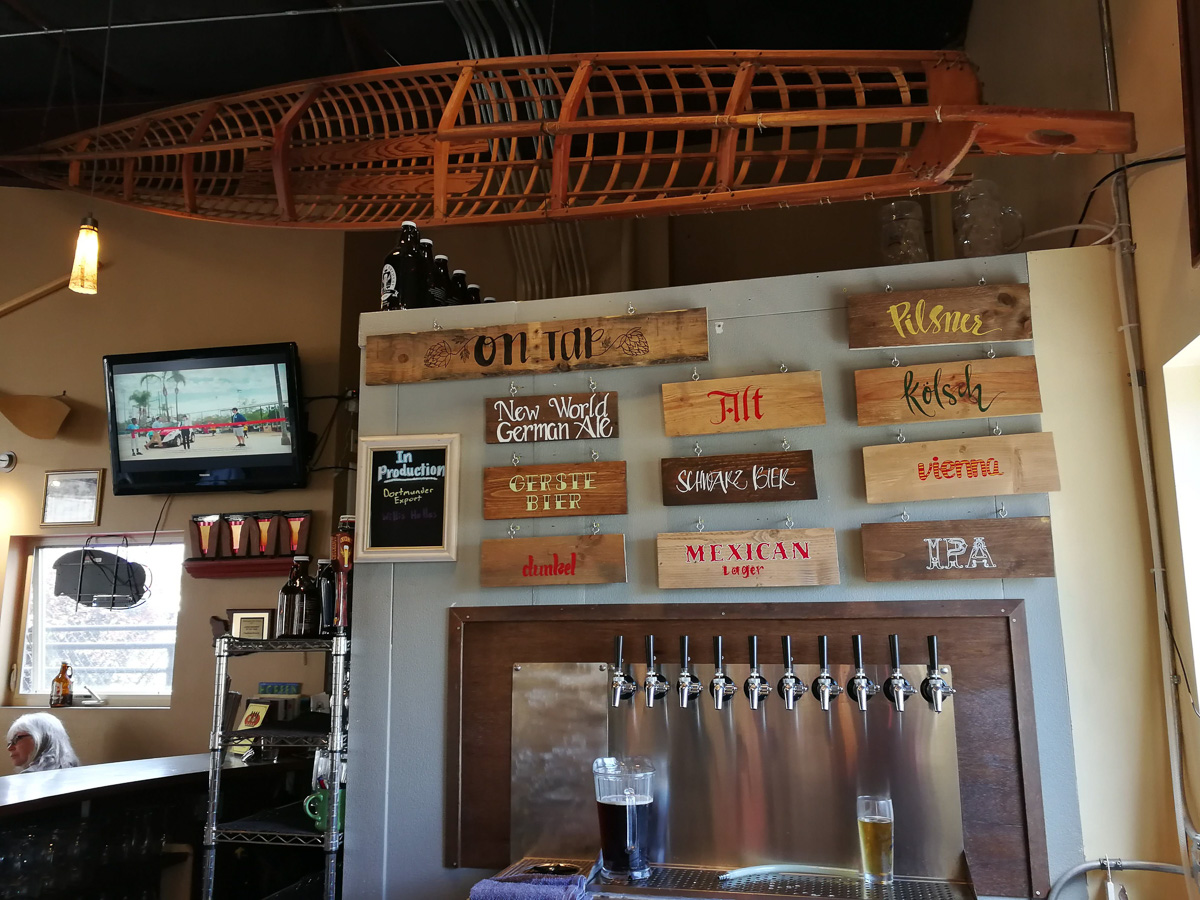 Kranarna och listan över ölen som serverades hos Chuckanut.