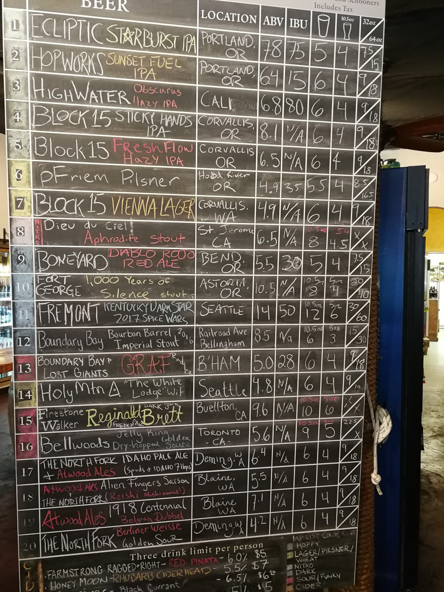 På vägen mot Vancouver passerade vi Bellingham, en stad i Skövdes storlek, med en bubblande ölscen. Ett självklart stopp här är Chuckanut, som brygger öl i klassisk centraleuropeisk stil. Chuckanut har också varit plantskola för både pFriems grundare och för huvudbryggaren på Wayfinder, vilket givetvis bidragit till de bryggeriernas framgång med lager.