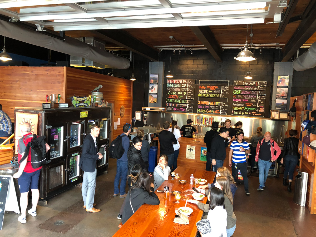Det var mycket folk hos Fremont Brewing och de hade två separata barer i deras taproom.