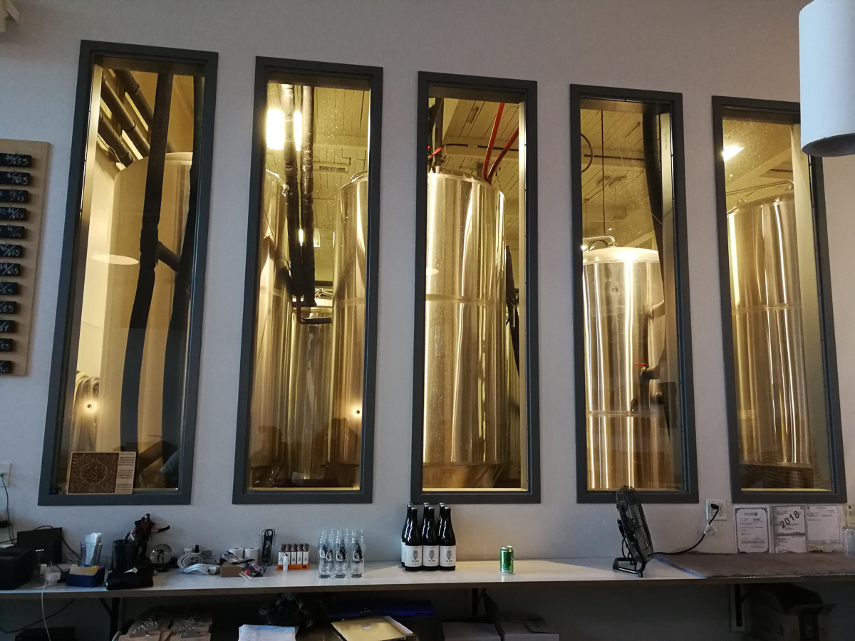 Jästankarna var synliga genom glasrutor i Holy Mountains taproom.