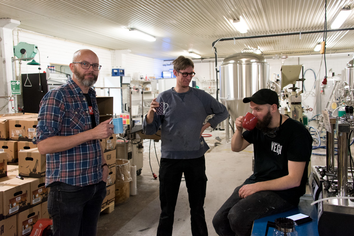 Som ganska färsk hembryggare är det förstås drömmen att få åka ut till ett riktigt bryggeri och se hur de gör sin öl. Visst har jag fått lite mer erfarenhet sen sist jag skrev om det, tolv batcher från februari till den dag då jag infann mig på Vega, men det slår ju inte att få vara med på riktigt! Både Otto och Magnus är hembryggare som blivit bryggare – och svarar tålmodigt på en myriad av frågor under dagen.