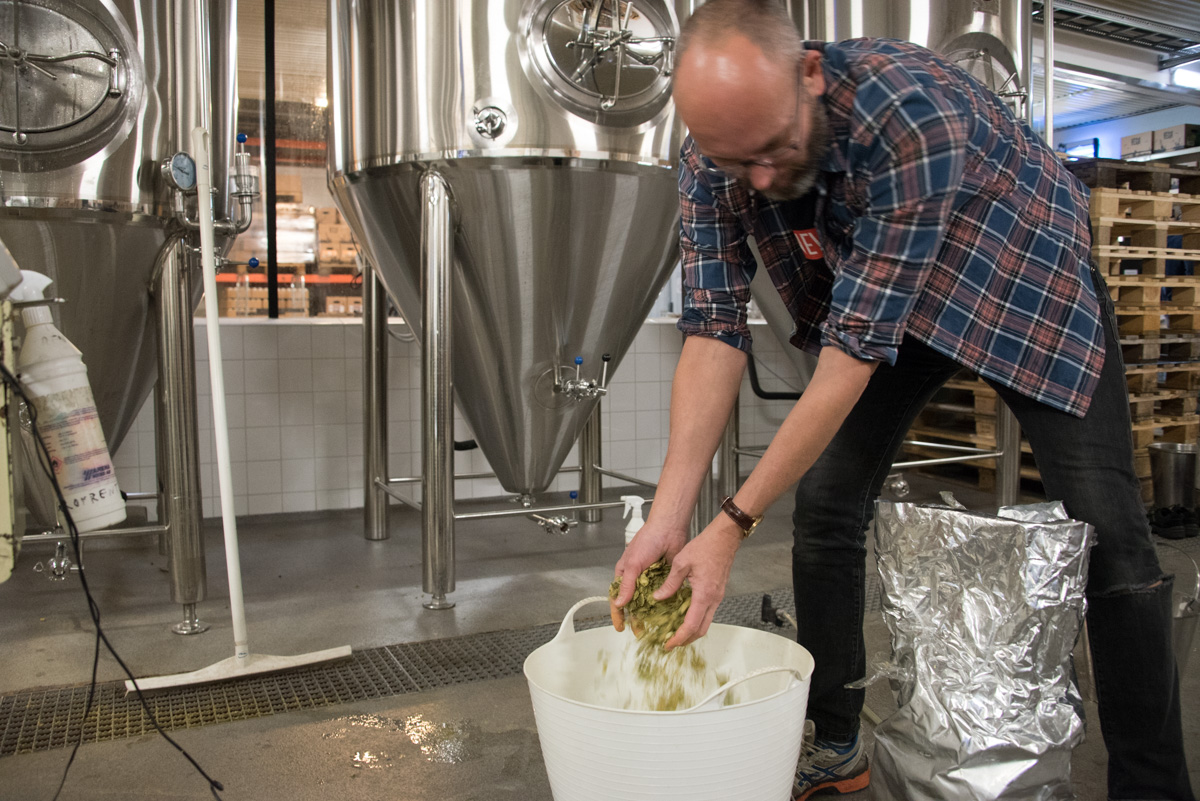 Vi börjar dagen vid det jacuzziliknande mäskkärlet som i likhet med allt annat är i lite större skala än vad jag är van vid. Otto frågar lite diplomatiskt hur jag vill göra under dagen.
