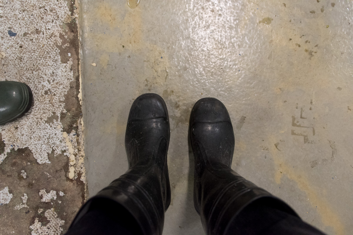 Det skulle bli värre – dravet skulle ju tas om hand. Det är inte som hemma heller. Snarare som att skyffla bort en halvmeter blötsnö från en garageuppfart. Det tog på ryggen och man får hoppas att grisarna som är slutkonsumenter av dravet uppskattar insatsen. Men jag gnällde inte och Magnus höll tyst. Eller, jag kan ha gnällt lite över stövlarna jag fick låna. Storlek 42. Det tog några dagar innan fötterna rätade ut sig till 47:or igen efter det.