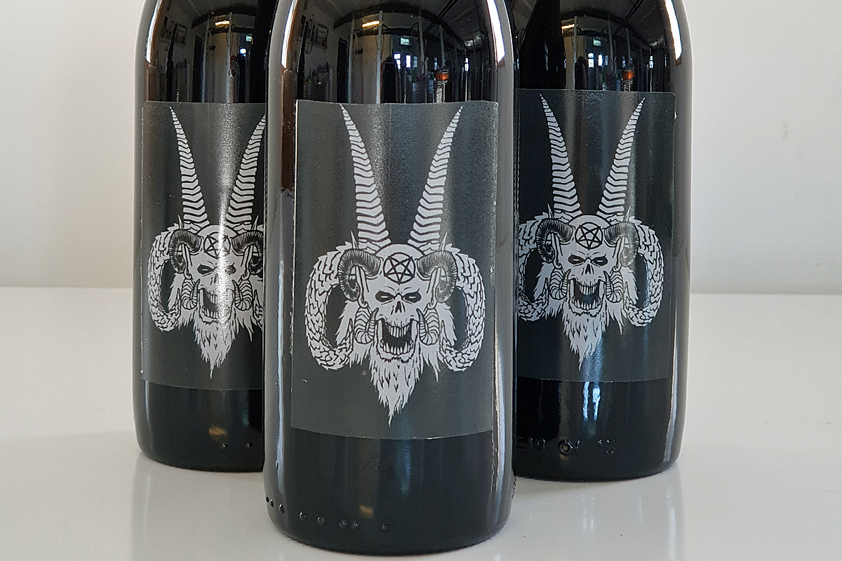 – Etiketten med en demon är ritad av min brorson och på baksidan har vi gjort om den första versen i låten. Jag skickade in det här till Systembolagets märkningssupport i förväg och de sade att vi behövde få godkänt av bandet, säger Kalle Andersson på bryggeriet.