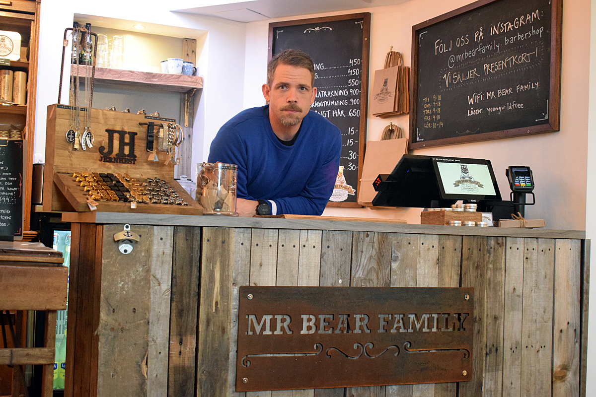 Företaget har en barber shop i Göteborg där man också säljer sina produkter, men där ska han inte jobba.