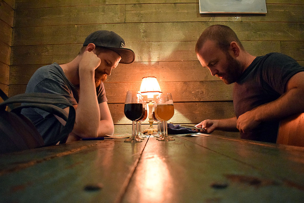 Victor Bernklev och Sebastian Olsson gick grundligt igenom de olika ölen men var inte säkra på att få alla rätt.