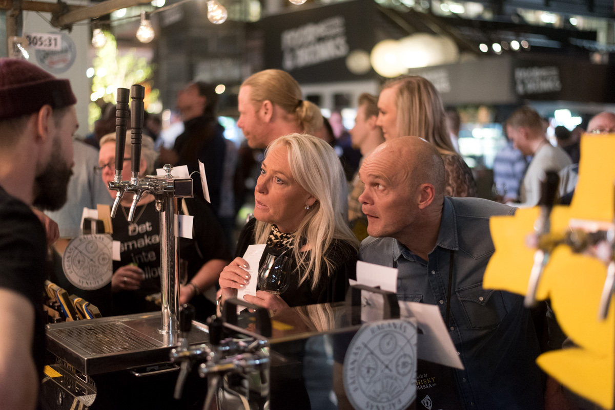 Antalet ölutställare har minskat något i år, så att nu är det 50/50 öl och destillerade drycker, men det märktes inte så mycket på golvet.