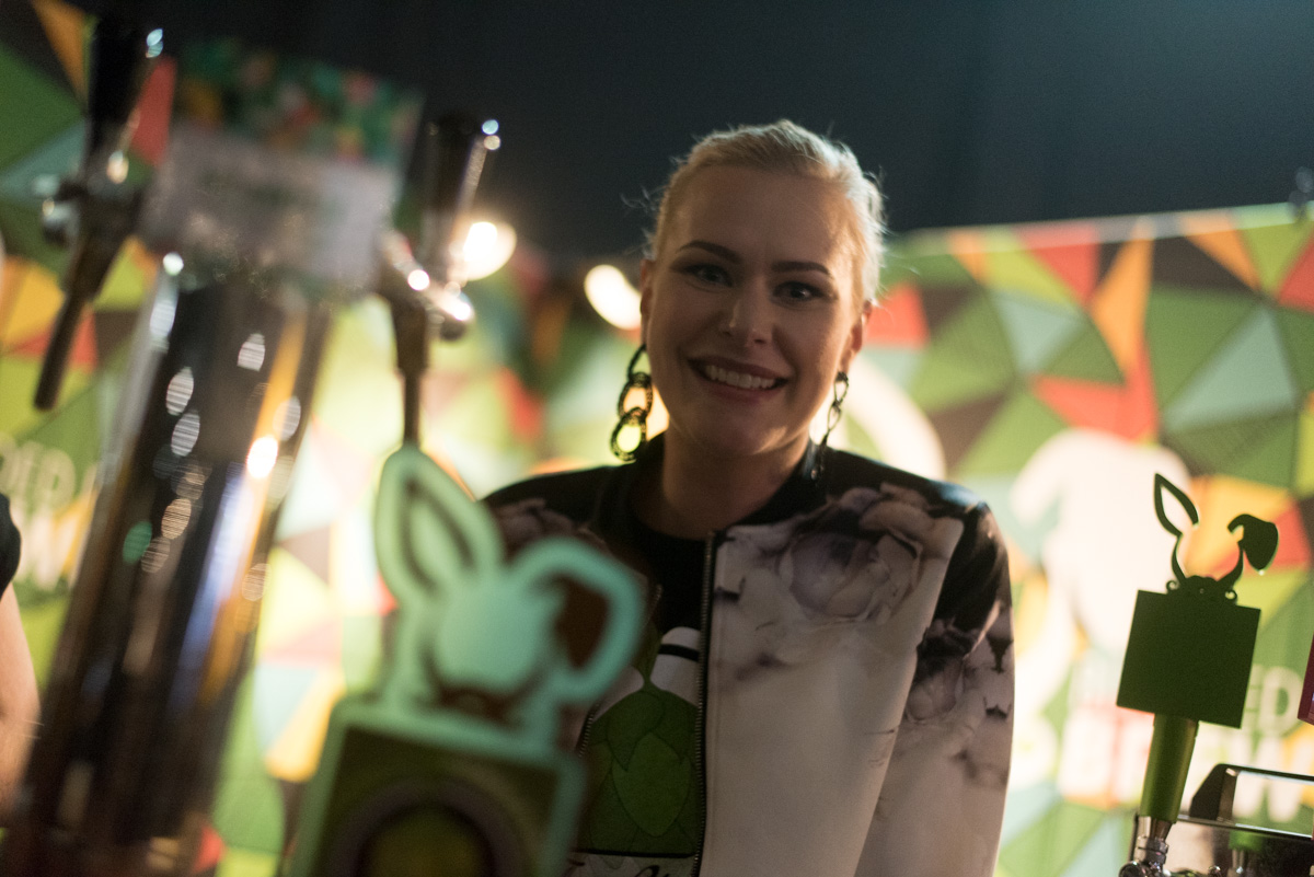 "Roligt att äntligen få servera vår egen öl, det är många som frågar efter den", säger Elin Carlsson, som stod i Bearded Rabbits bås och serverade Females IPA.