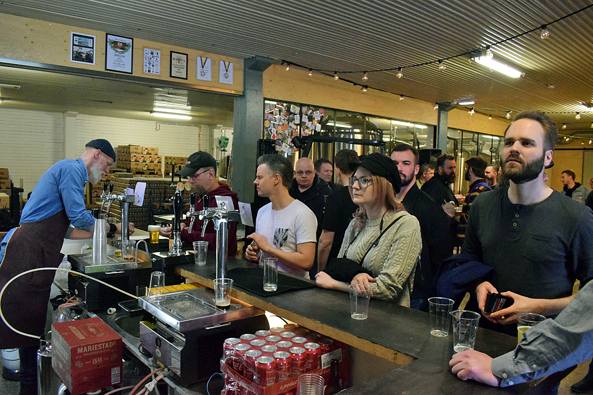 På invigningsfesten var det många från ölbranschen som ville prova ölet och även få en pratstund med kollegor och vänner.