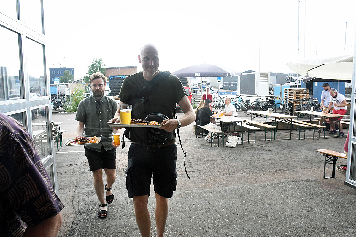 Lunchen var välbesökt och under eftermiddagen droppade det in ölsugna gäster. En mindre regnskur svalkade mitt i den värsta värmen men snart var solen tillbaka igen.