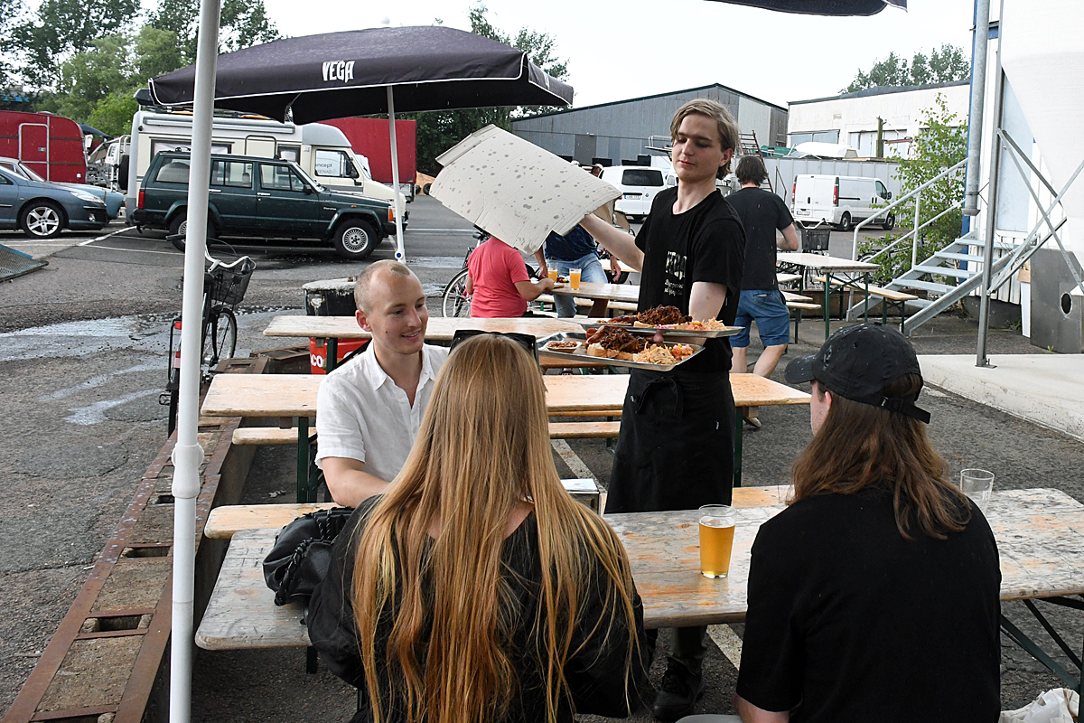 Lunchen var välbesökt och under eftermiddagen droppade det in ölsugna gäster. En mindre regnskur svalkade mitt i den värsta värmen men snart var solen tillbaka igen.