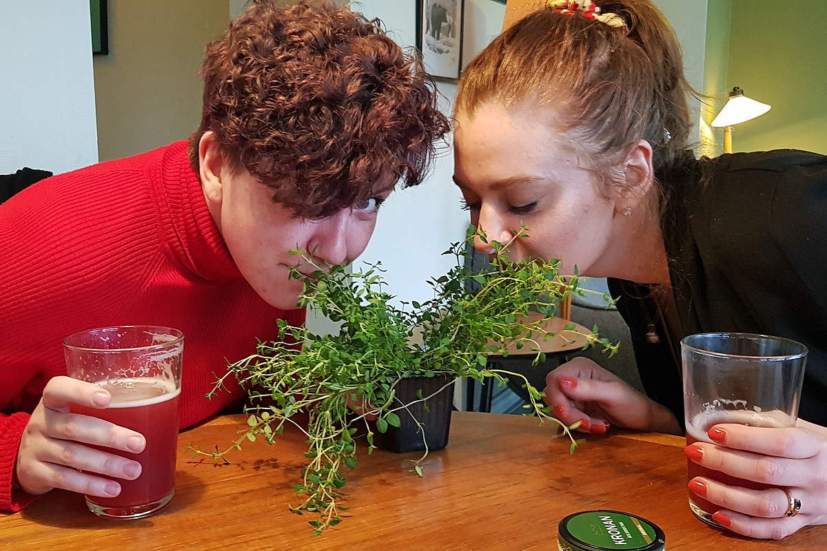 – Vi ville ha något humligt och modernt, och så var temat i år att smaksätta med något. En av tjejerna hade med sig timjan och dessutom köptes det in mer i Malmö, berättar Marika Sjöström på Pax Brygghus.