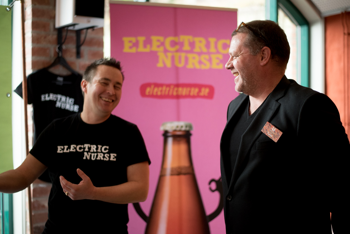 Timo Korhonen, till höger, glider runt och kollar läget bland bryggerierna, vilket tycks vara okej hos i alla fall Electric Nurse om man får döma av Jesper Lindbergs minspel.