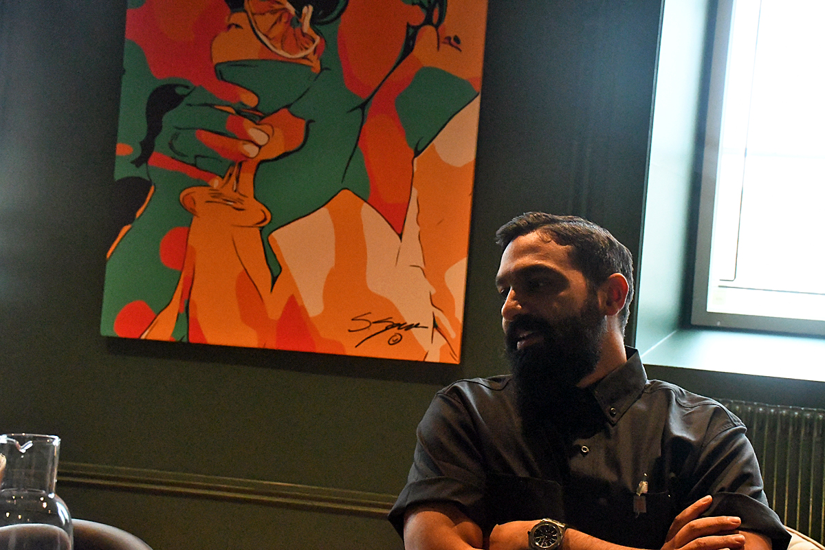 Sasse Sepehrazar är en riktig mångsysslare och har bland annat gjort några av tavlorna i lokalen.