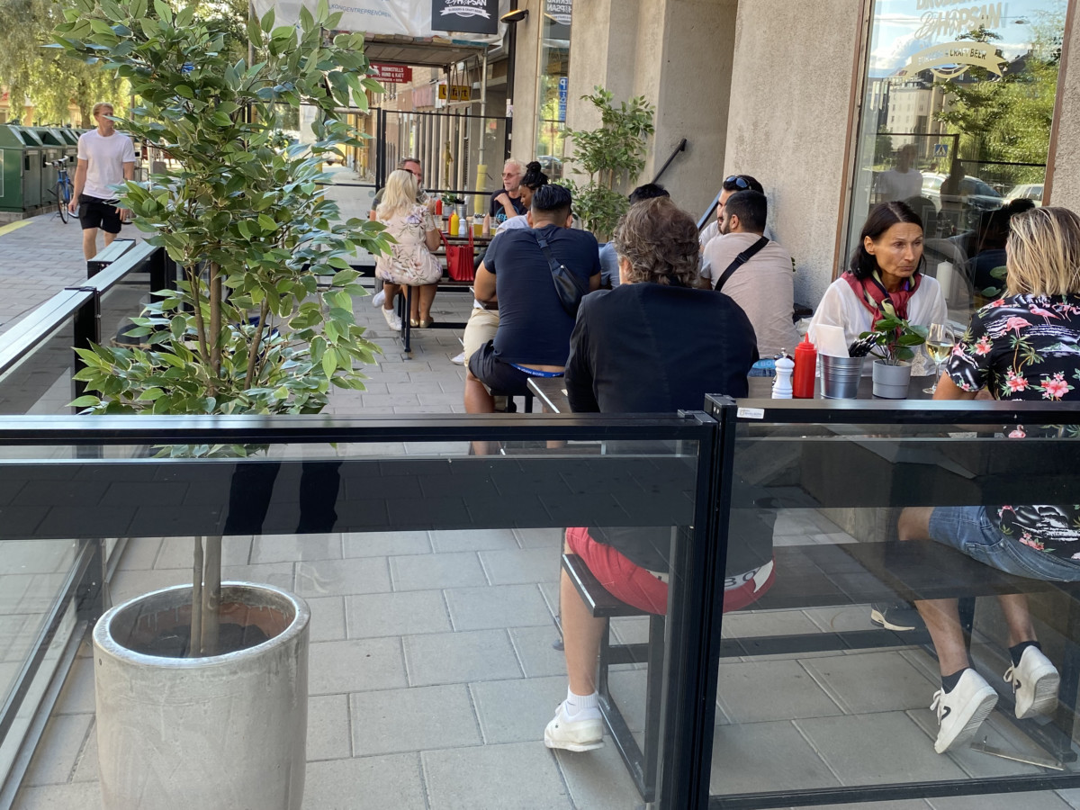 I går var det smygöppning av Brödernas by Hopsan och uteserveringen var populär.
